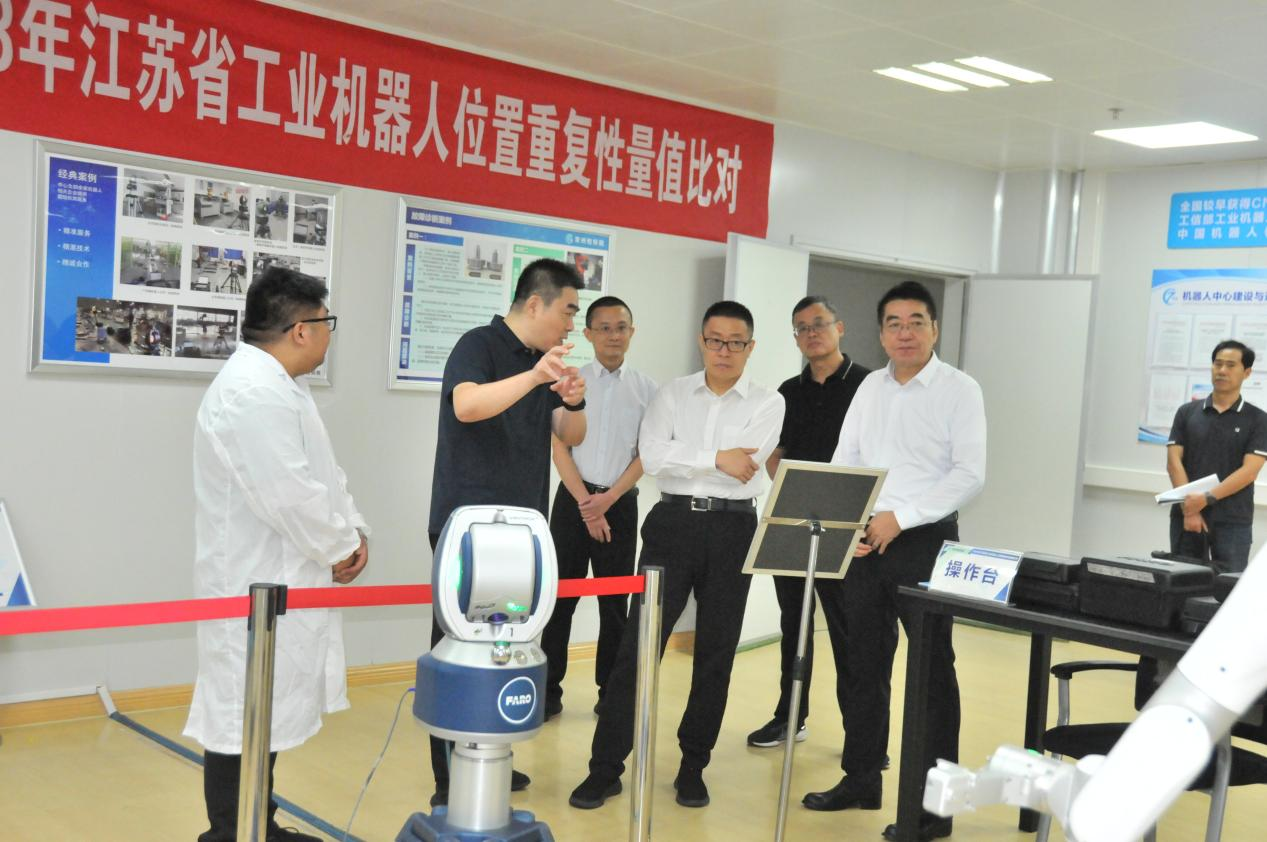 10月14日,武进区委书记沈东率队来我院调研国家智能工业机器人产业计量测试中心筹建情况。科教城管委会副主任路军方、市市场监管局副局长卞伟等参加调研。
