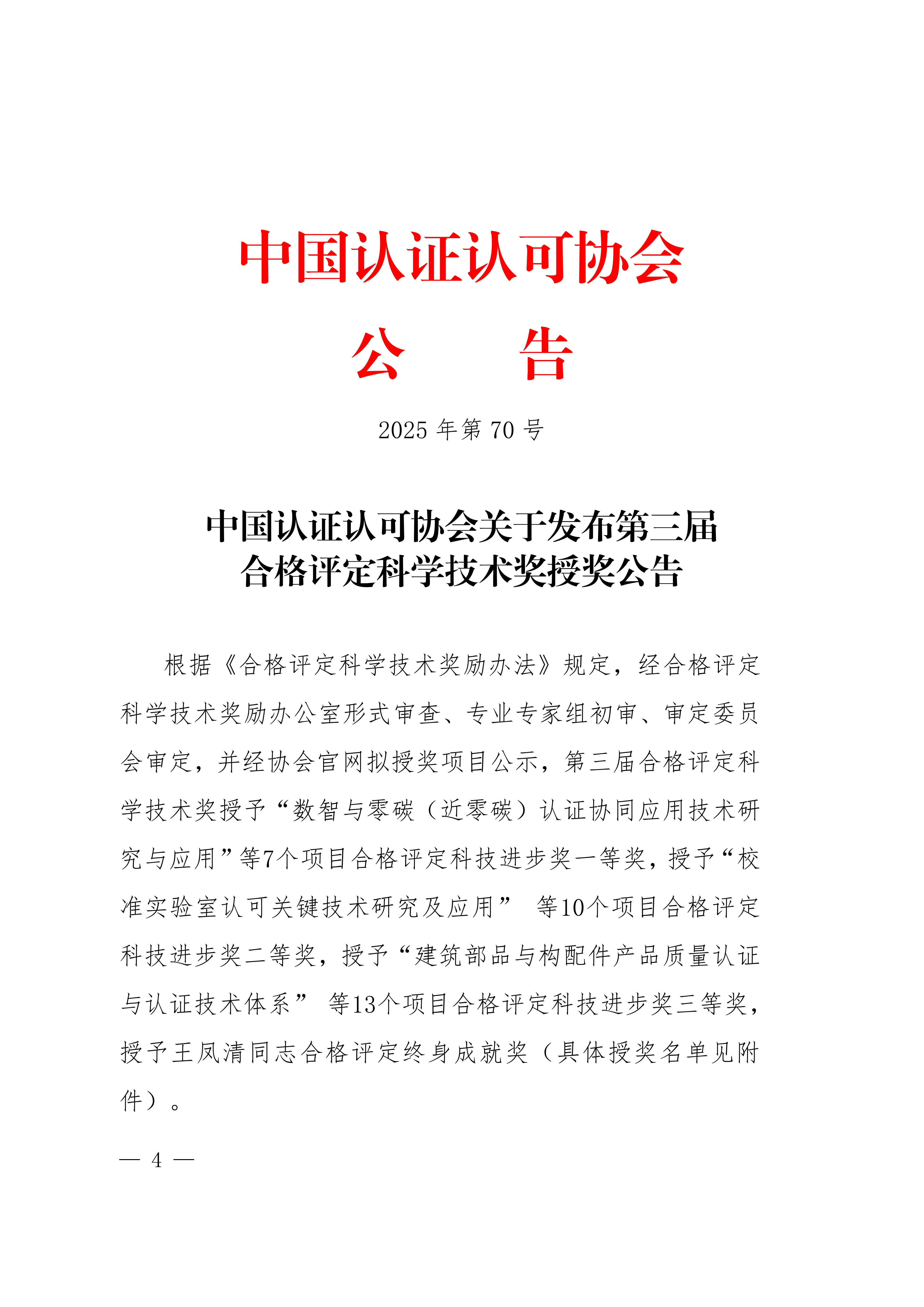 近日,中国认证认可协会发布第三届合格评定科学技术奖授奖公告,我院名列其中,获得合格评定科技进步奖三等奖。