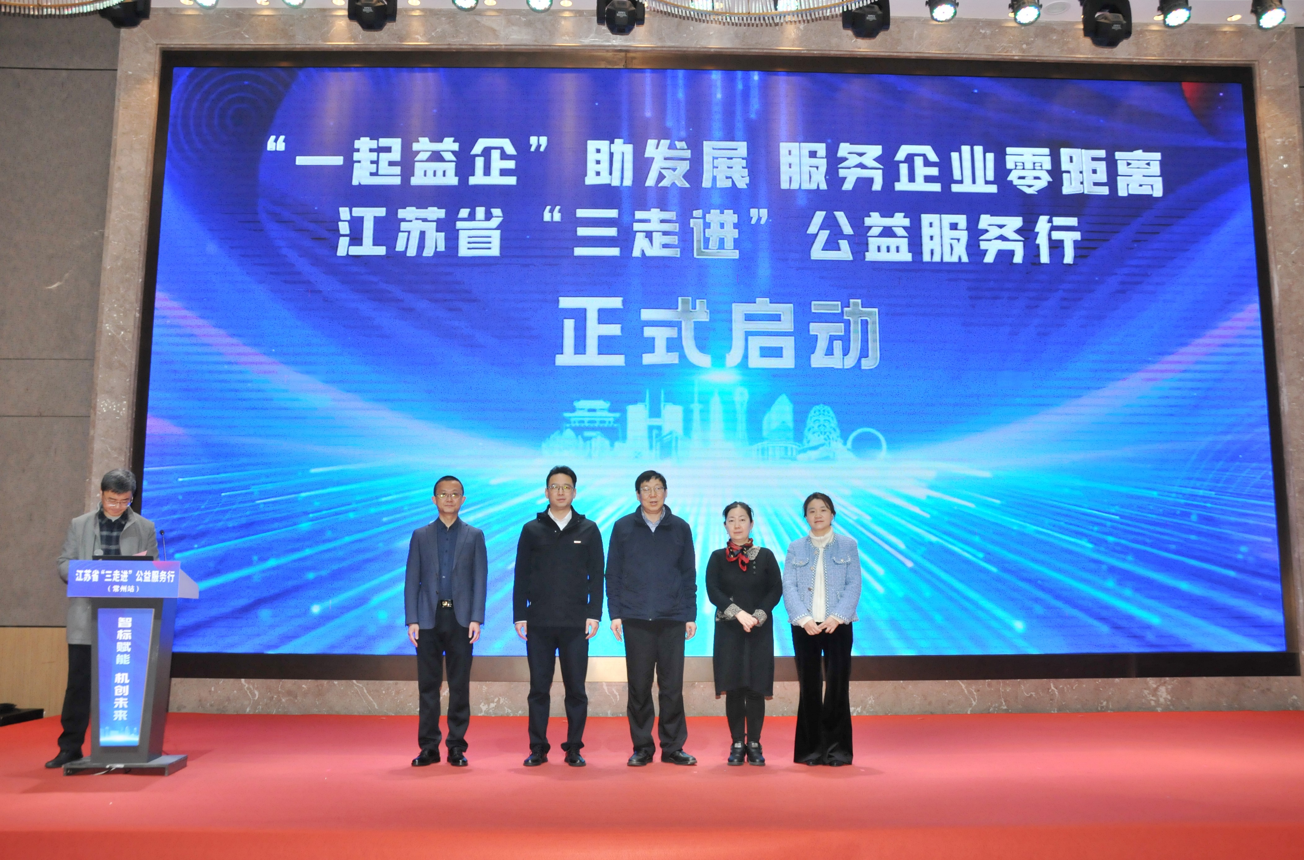 3月24日,2026年江苏省“三走进”公益服务行首场活动在常州举行。省工信厅二级巡视员余雷、市工信局副局长史樱煜与市市场监管局副局长卞伟参加活动。
