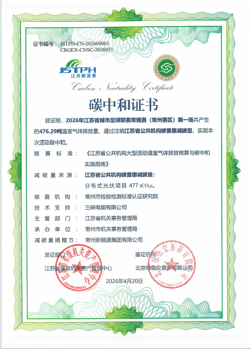 为助力实现“零碳”目标,我院整合常州新能源集团光伏发电等碳普惠项目所产生的减排量,并经核查确认,该部分减排量可完全抵消赛事碳排放,形成“行为量化、专业核查、权威鉴证、价值转化”的碳中和闭环。